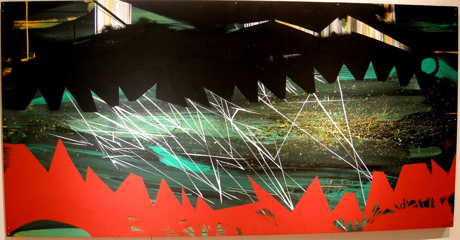 08年9月「山や風や雲と共に流れる星や人が空の穴である月へと闊歩するようなエネルギー」「その周囲や内部を素早く通過する鋭いもの」この2つをテーマにした、自身初となる個展、【 exhibition “ #100 ” 】 を京都【 GALLERY maronie 】 にて開催。これにより一つ大きな目標を設定した中で、ライブだけでない作品制作に没頭することによって、木を自由に削り、釘を打ち込んでキャンバスを作る物造りの楽しさを肌で一から感じ、絵を描く喜びを更に知る。