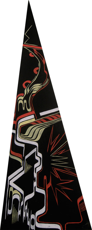 08年9月「山や風や雲と共に流れる星や人が空の穴である月へと闊歩するようなエネルギー」「その周囲や内部を素早く通過する鋭いもの」この2つをテーマにした、自身初となる個展、【 exhibition “ #100 ” 】 を京都【 GALLERY maronie 】 にて開催。これにより一つ大きな目標を設定した中で、ライブだけでない作品制作に没頭することによって、木を自由に削り、釘を打ち込んでキャンバスを作る物造りの楽しさを肌で一から感じ、絵を描く喜びを更に知る。